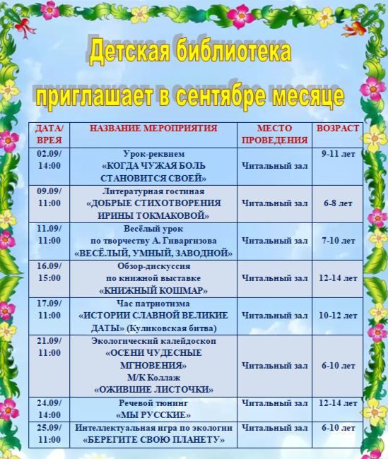 Вот и закончилось лето! Время отдыха, игр, развлечений и, конечно же, чтения книг. В течение трёх месяцев в библиотеках района проводилось множество интересных мероприятий, во время которых ребята творили, рисовали, принимали участие в разнообразных играх, конкурсах, развлечениях.